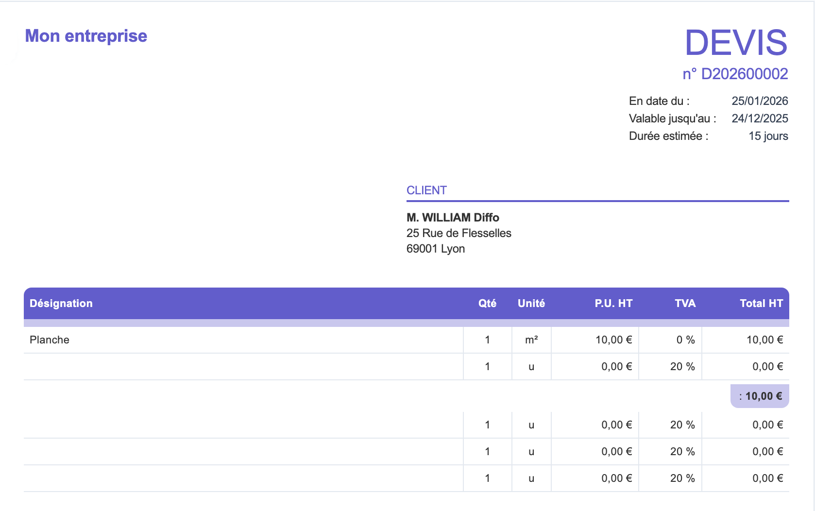 0 FCFA /Mois- Création de devis simples